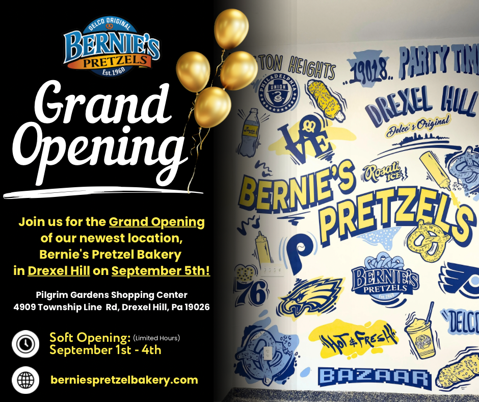 Located in Clifton Heights (and now expanding to Drexel Hill), Bernie’s Pretzels is the classic Delco snack spot!